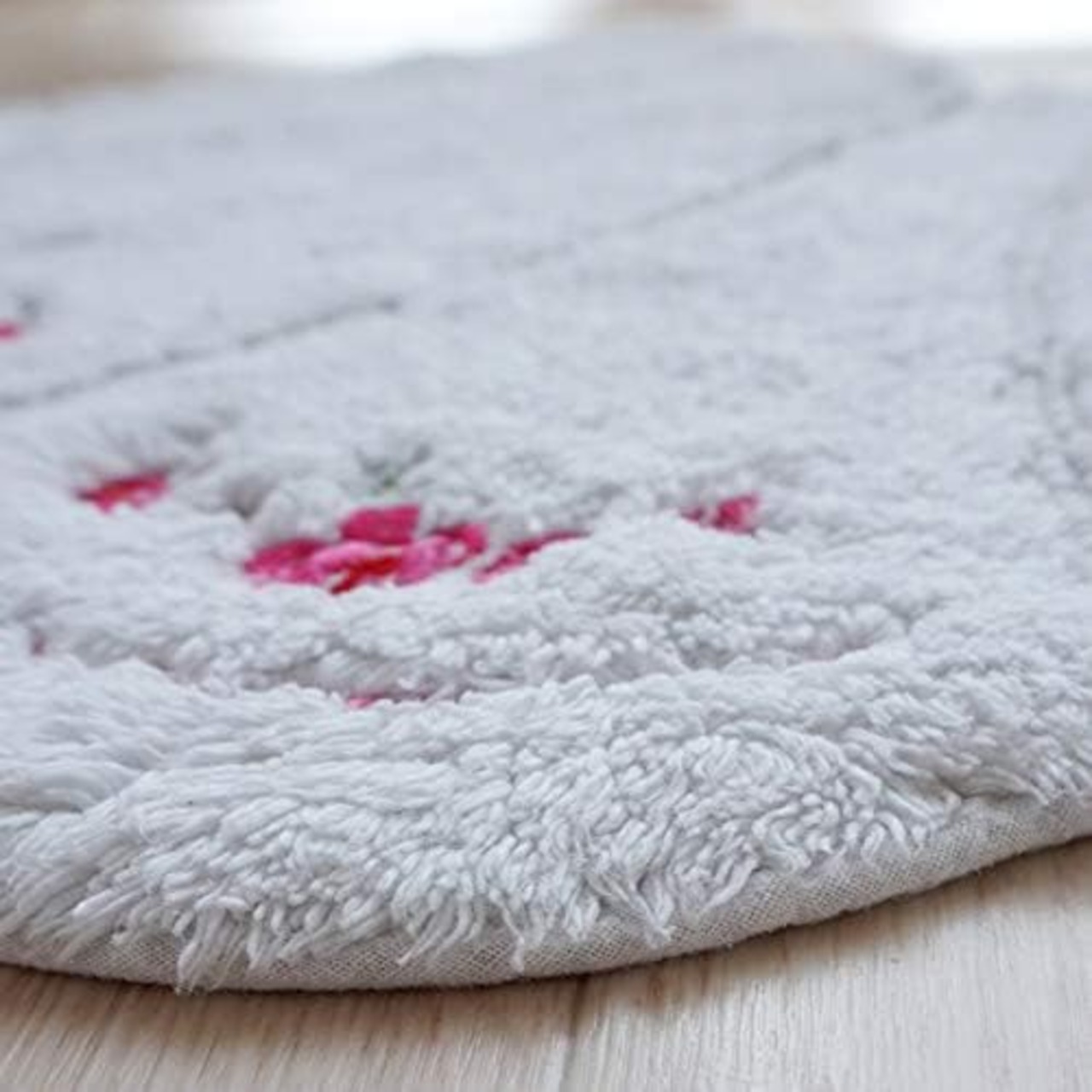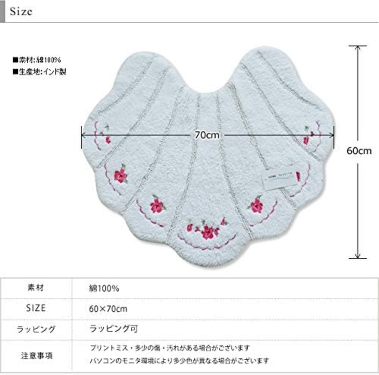 エレガントな貝殻の形が素敵なトイレマットホワイト/ピンクです 肌触りのよい綿100%のマットです シェルの形にお花の刺繍が、より一層可愛さを引き立ててくれます トイレ空間華やかになります