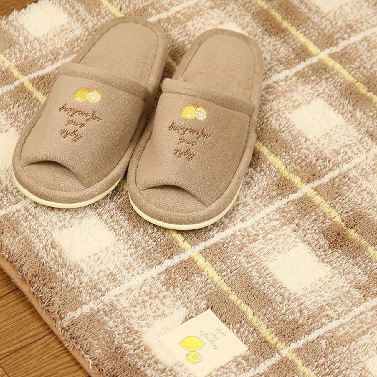 ●洗浄暖房型・普通型共用ふたカバー、普通サイズトイレマット、ペーパーホルダーカバー、スリッパの4点セット。 ●洗浄暖房便座でも、普通便座(洗浄便座がついていない便座)でも共用で使用できる吸着タイプです。 ●マットの裏側には滑り止め加工がしてあります。 ●現代のライフスタイルを意織したナチコラルテイストのトイレシリーズてす。 ●人と繋がリ自然に寄り添うことをイメ ージし、ホッと落ち菩ける暖かみのあるデザインです。 ●「ギンガムチェック」と「フルーツ」が、暖かさを表現しています。 ■セット内容 1:共用ふたカバー 2:普通サイズトイレマット(約60cm 55cm) 3:スリッパ 4:ペーパーホルダーカバー ●カラー:ブラウン (レモン) ●商品詳細 1:普通サイズトイレマット サイズ:約60cm 55cm 素材:アクリル100% 裏面すべり止め加工(首下41cm) 生産国:中国製 2:共用ふたカバー ドレニモタイプ(共用タイプ) ●装着可能サイズ:フタの厚み+長さが47~52cmまで装着可能 ●自動開閉機能付きのトイレには適合しません。 素材:アクリル100% 吸着シート:アクリル樹脂 お洗濯の際は洗濯用ネットをご使用ください 。 薬品を使ってお掃除する場合はフタカバーを外してください。 生産国:中国製 3:スリッパ 足のサイズ:約25cmまで 素材:綿75% ポリエステル25% 生産国:中国製 洗濯機での丸洗いは洗濯ネットをご使用ください。 家庭用洗剤をご使用ください。 乾燥機はご使用にならないでください。 4:ホルダーカバー 素材:綿75% ポリエステル25% 成型部品 ポリプロピレン 生産国:中国 装着可:成型部品がペーパーホルダーの隙間(※厚さ4mm以上、幅113mm以上)に差し込める場合 ※お洗濯の際は洗濯用ネットをご使用ください ※お洗濯の時は成形部品を必ず外してください ホルダー下部には予備のトイレットペーパーを1ロールストックできます。 乾燥機はご使用にならないでください。