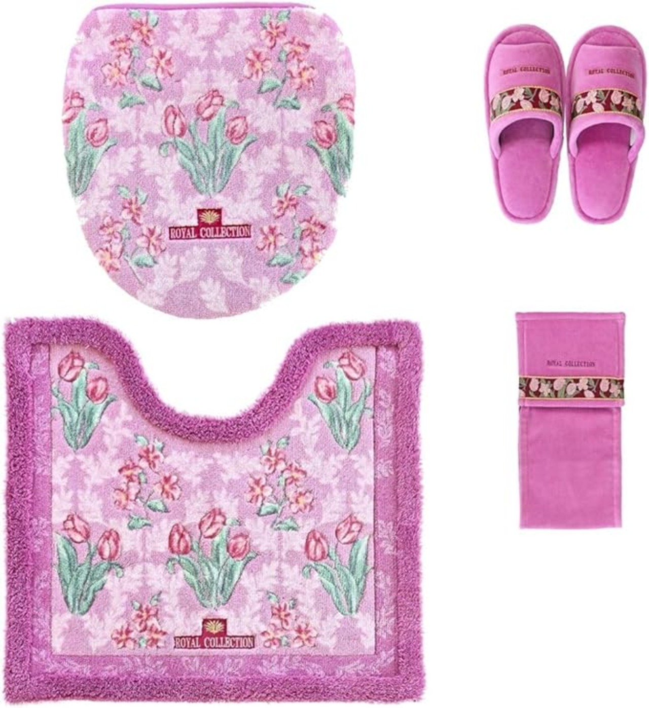 トイレマット 4点 セット 日本製 ピンク ドレニモ オカ ロイヤルコレクション アーツ おしゃれ 北欧 滑り止め加工 洗浄暖房便座 普通便座 兼用 洗濯しやすい 東 北 のおトイレに吉