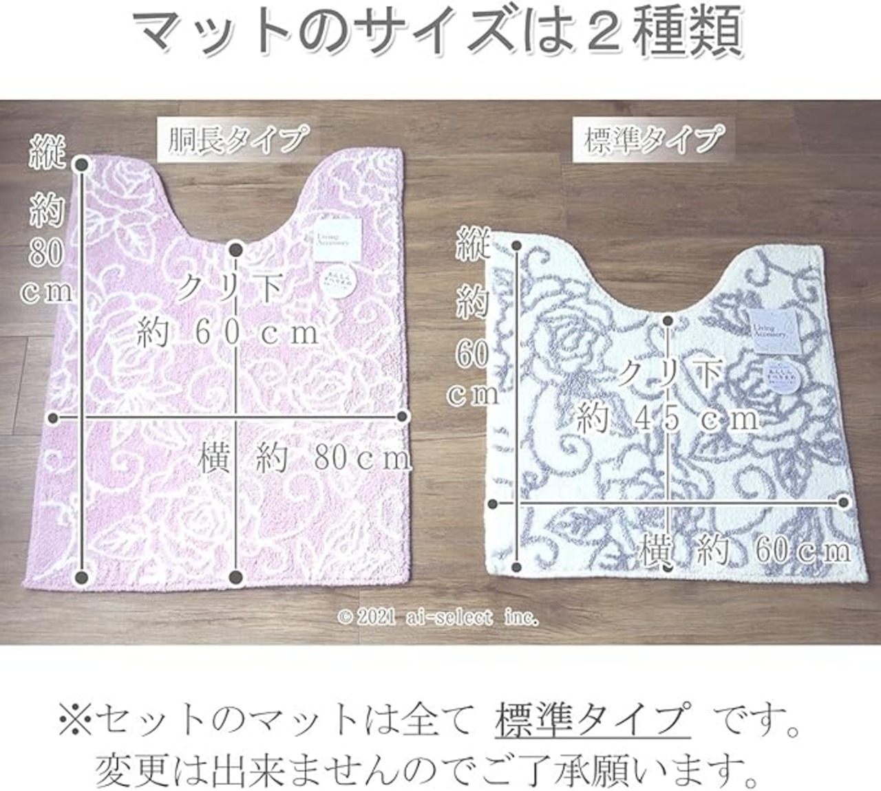 サイズ:トイレマット:約 縦60x横60cm(クリ下 約45cm)タオル:約34 75cm スリッパ:標準フリーサイズ(外寸 約27cm)