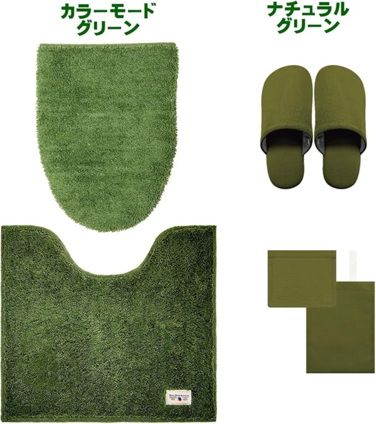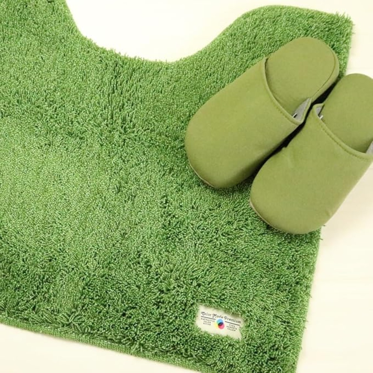 トイレマット セット 4点 グリーン 北欧 吸着型 オカトー カラーモードプレミアム 緑 毛足長い 高級