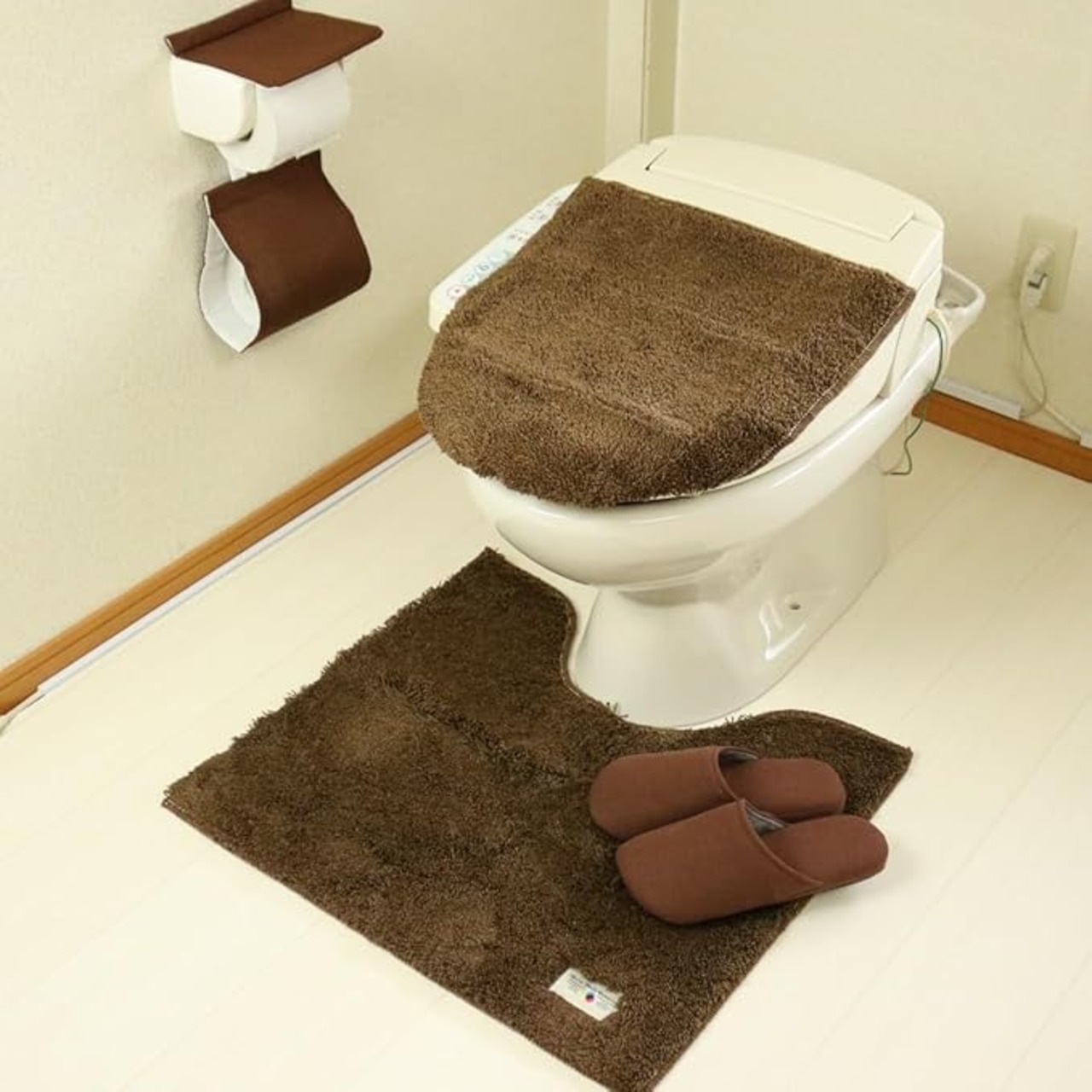 トイレマット、吸着型フタカバー、スリッパ、ペーパーホルダーカバーの4点セットです。