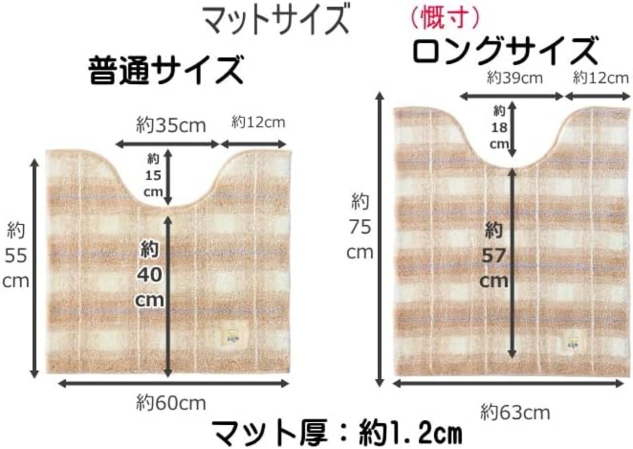 ●商品詳細 1:普通サイズトイレマット サイズ:約60cm 55cm 素材:アクリル100% 裏面すべり止め加工(首下41cm) 生産国:中国製 2:共用ふたカバー ドレニモタイプ(共用タイプ) ●装着可能サイズ:フタの厚み+長さが47~52cmまで装着可能 ●自動開閉機能付きのトイレには適合しません。 素材:アクリル100% 吸着シート:アクリル樹脂 お洗濯の際は洗濯用ネットをご使用ください 。 薬品を使ってお掃除する場合はフタカバーを外してください。 生産国:中国製