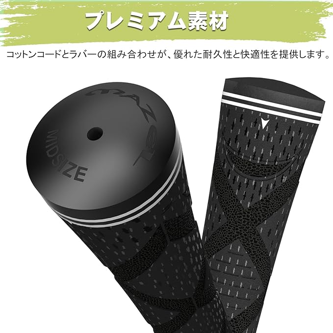 ブラッシュドコットンコードテクノロジー:柔らかいゴム素材に綿コードを組み込み、クロス技術でグリップ上部に配置。耐久性、安定性、コントロール性を向上させます。