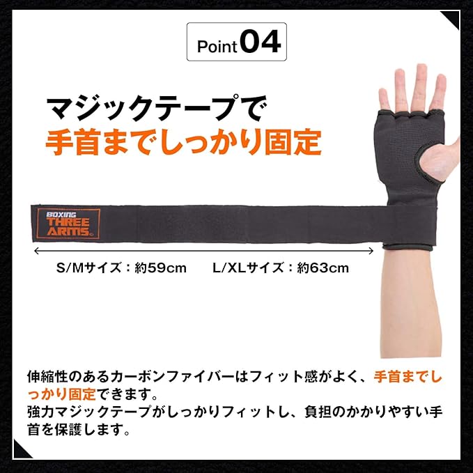THREE ARMS ボクシング クイックバンテージ ゲルで衝撃を吸収 簡単に着脱 (キックボクシング/格闘技 などに) バンテージ サポーター グローブ 男性 女性 子供 簡単 マジックテープ 試合用 スリーアームズ