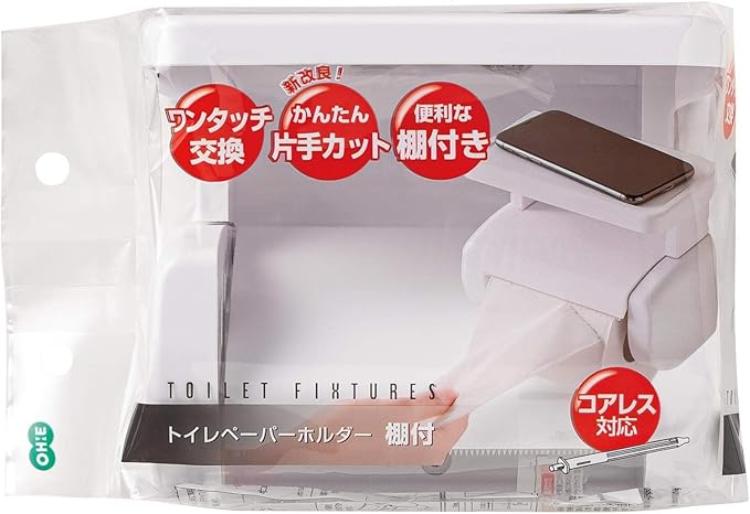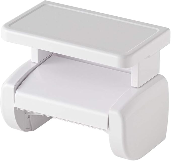 オーエ ペーパーホルダー 白 縦10.2 横17.4 高さ14.5cm トイレ 棚付き ウェイト式 重り式 かんたん片手カット 簡単取り付け
