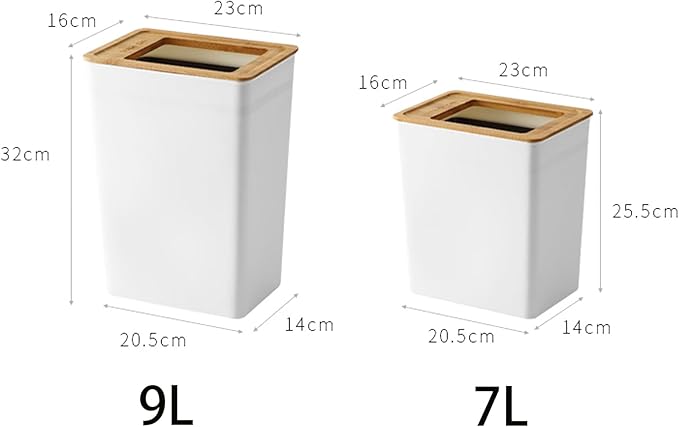 スリムで軽量な小さなゴミ箱:7リットル サイズは長さ23cm、幅16cm、高さ25.5cm;9リットル サイズは長さ23cm、幅16cm、高さ325cm; この幅16cmのゴミ箱は、トイレ、ソファ、ベッドなどの隙間に置くことができるので、スペースを大幅に節約できます;7リットル/9リットルの容量で、毎日のゴミの保管のニーズを満たすことができます。