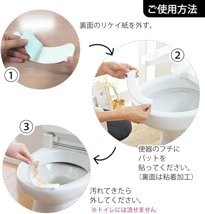 裏面が弱粘着で、便器のフチに貼るだけで取り付けできる
