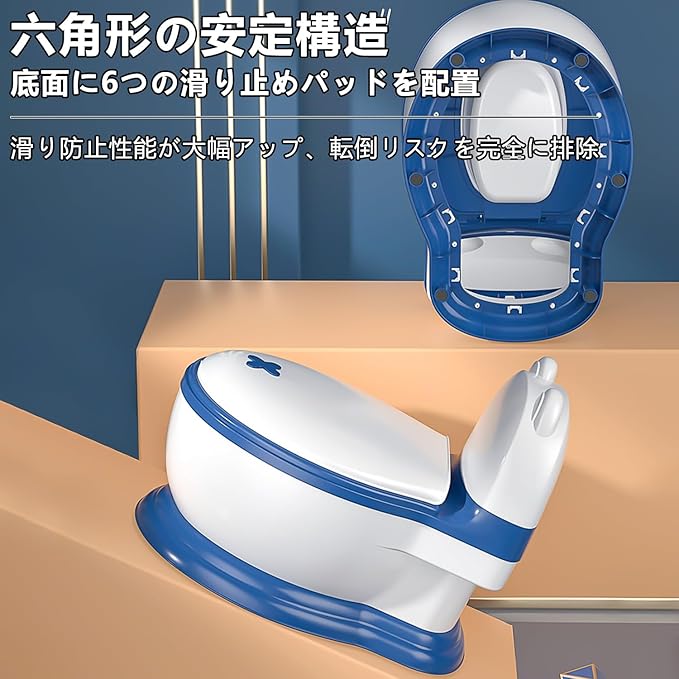 【安全・安定設計】:無毒のPP素材を使用し、お子様の安全を最優先に設計。座面はワイドサイズで、お子様に十分な安心感を提供。底部には6つの滑り止めパッドを配置し、安定性を大幅に向上。転倒やズレを防止する安全設計で、保護者も安心してお使いいただけます。