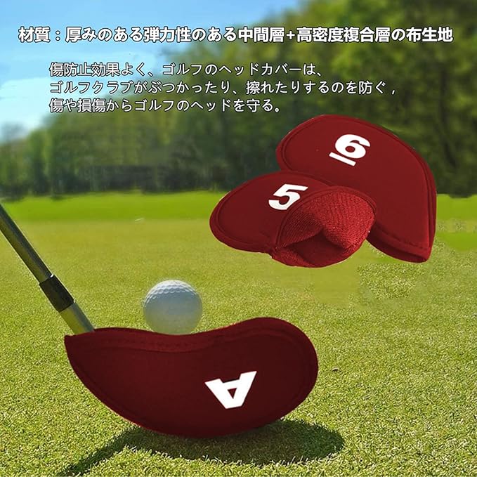 YFFSFDC ゴルフアイアンカバー ヘッドカバー 10枚入り(3~9、A、Pw、Sw)番号 保護カバー