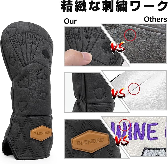 ゴルフクラブヘッドカバー ポーカーデザイン ゴルフヘッドカバー 高級レザー製 ドライバー フェアウェイウッド ユーティリティ ハイブリッド 番号タグ付き