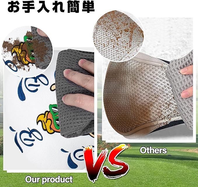 【高品質な素材】:ゴルフヘッドカバーは高品質な素材を採用しております。表地は耐磨耗性の良い合成皮革(PUレザー)で、耐久性が良くて、長持ちです。更に、防水で、うっかりで雨に降られても心配なしで、汚れなどでも気軽に拭き取れます。内側のボアも厚めにし、肉厚のあるしっかりした作りで大切なゴルフクラブをキズから守れます。
