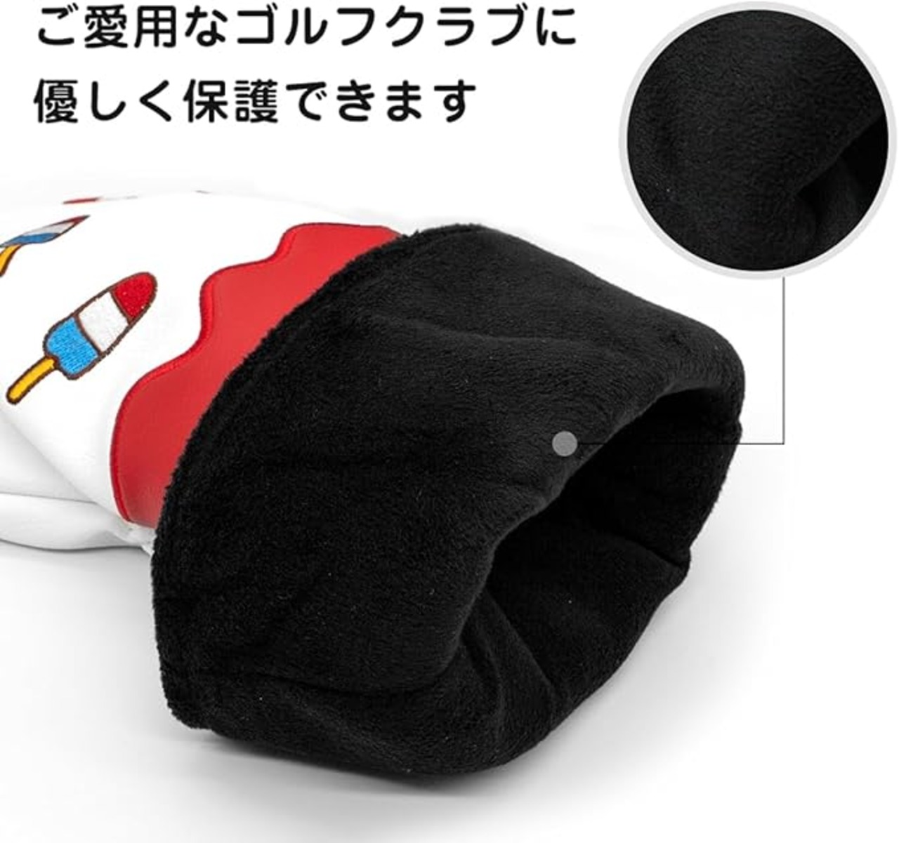 【商品仕様】:ゴルフヘッドカバードライバー用/約34cm;フェアウェイウッド用(番号タグ:3、4、5、7、X)/約30cm;ハイブリッドウッド用(番号タグ:2、3、4、5、6、UT)/約24cm;ピンタイプパターカバー(マグネット開閉)/約17cm;アイアンカバー(マジックテープ開閉)/オーバーサイズ ※形状によっては合わない場合がございます。裏ボアも厚めの生地でしっかりガード。