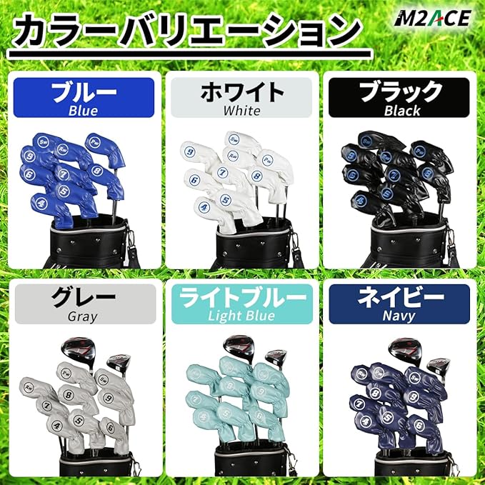 anddat アイアン ヘッドカバー ウェッジカバー PUレザー 9枚セット 刺繍 ゴルフクラブ メンズ 男性 アクセサリー スポーツギア プレゼント お祝い
