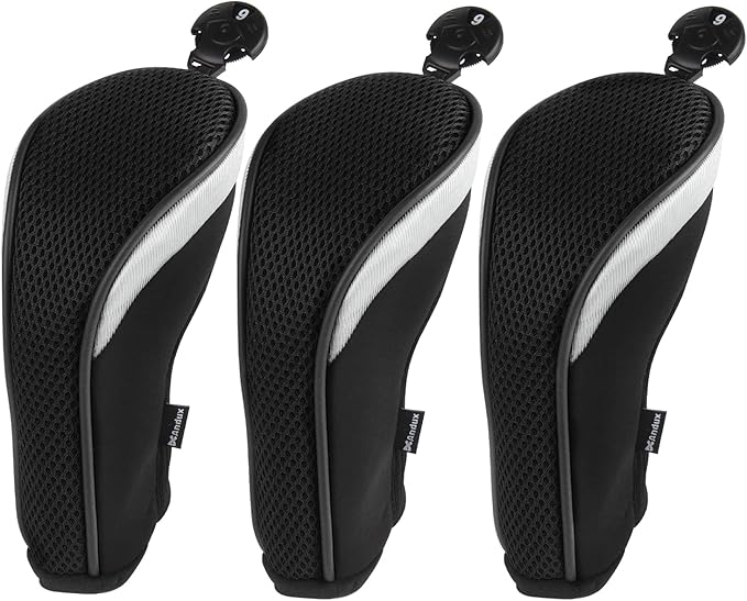 Andux ゴルフ ハイブリッド クラブヘッドカバー 交換可能な番号タグ付き 3個セット (シルバー)