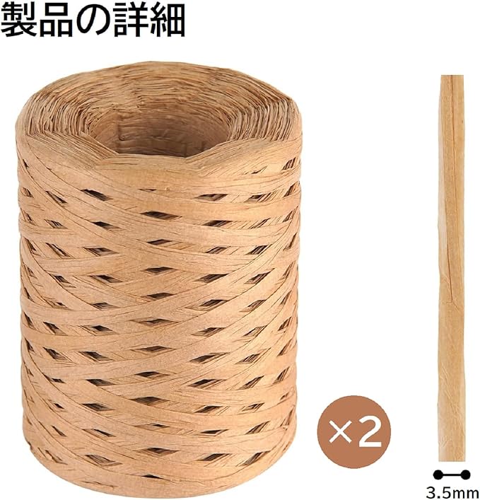 ラフィアロープ 2巻入り 幅3.5mm - 夏用帽子やビーチバッグなどの作成に最適