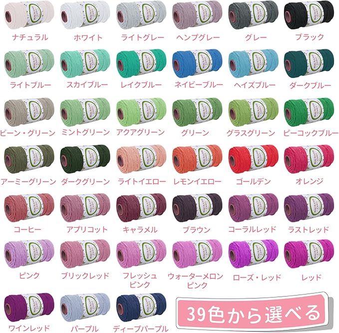 【39色から選ぶことができます】 色は自然で目を引く、様々なマクラメのプロジェクトが行うことができます。このマクラメのひもは、マクラメ初心者やDIYクラフト愛好家のための素晴らしいクリスマスプレゼントになります。