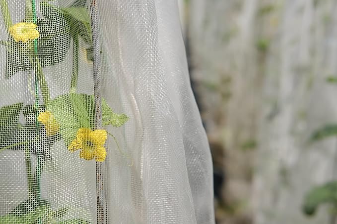 害虫侵入防止のための防虫ネット。被害はなく、植物を安心して育てられます。果樹栽培には必須です。