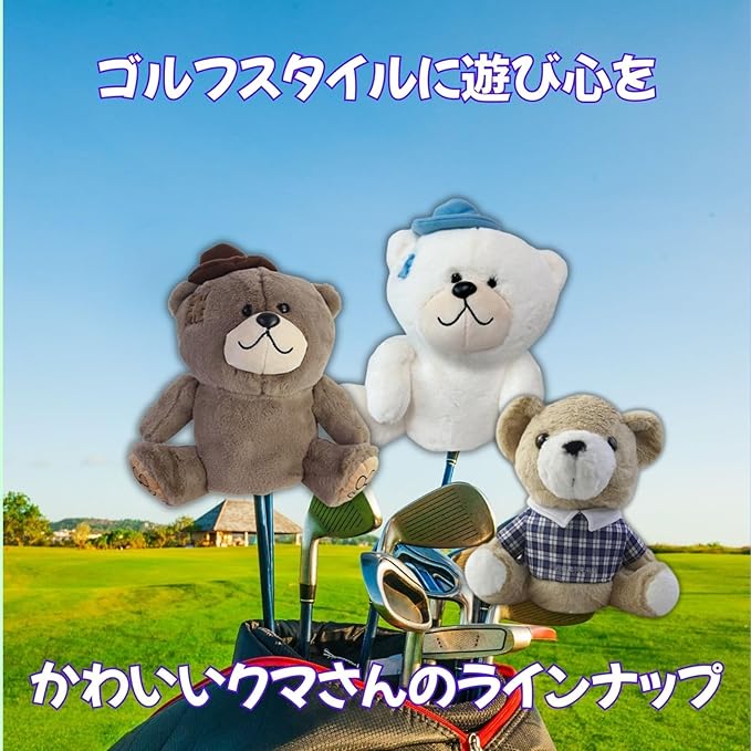 一目で目立つ熊がモチーフのカバーで、あなたのゴルフスタイルに遊び心をプラス。クラブの保護性も抜群で、実用性にもこだわりました。クラブを守るだけでなくギフトにも最適。おしゃれな見た目でゴルフライフをもっと楽しく!
