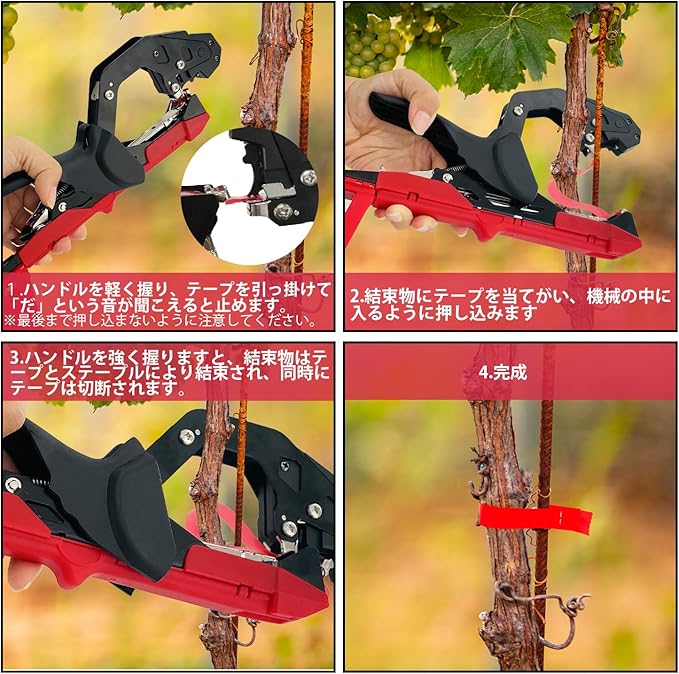Socpuro 【軽量化設計】誘引結束器 釘詰まりを防止 園芸用 片手型 誘引テープナー スリムタイプ 荷締機 農園 果樹 植物 誘引 結束機 ゴムハンドル 替え刃+テープ+針 使いやすい 誘引作業 テープナー