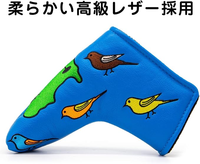 ゴルフクラブヘッドカバー ウッドカバー ドライバー フェアウェイウッド ユーティリティ ハイブリッド用ヘッドカバー幸運ブルーバーディー刺繍 番号タグ付き ゴルフヘッドカバー PUレザー製 おしゃれ ブルー