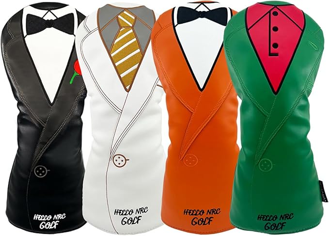 【スーツデザインで遊び心あるラウンドに】フォーマルなタキシード風デザインが目を引く、ユニークなゴルフヘッドカバー。ラウンド中の話題作りにもぴったり!