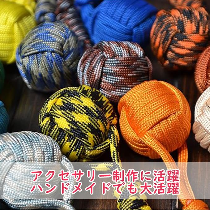 商品仕様: 名前:パラコード11色セット 材質:ポリエステル(内芯)+ポリエステル(表地) 長さ:1m 、2m、 2.5m、 4m 、5m 、7m 、7.5m *11色 直径:4mm 内芯:9芯 耐荷重:280kg 色: 11色セット 1空色 2虹色 3ブルー 4オレンジ 5イエロー 6ブラック 7森林迷彩 8海洋迷彩 9アーミーグリーン 10ブラックダイヤモンド 11オレンジ・イエロー・ブラック迷彩 ✿ロープは9芯から編まれています強力な引っ張り力で ✿鮮やかなシングルカラーとデザイン性のあるミックスカラー ✿キャンプでのテントやタープ用のロープなどに使える、軽くて持ち運びも便利な ✿用途ごとに使い分けることができます。 ✿各コードの直径は4mm、耐荷重は280kg。9芯構造の11色セットです。 ✿単色と組み合わせてもよし、カモカラーだけで結んでも素敵な作品が出来ます。 ✿パラコードの中でも作品が作りやすい4mmの太さです。 ✿軽くて強く伸びが少ないので、タープのガイライン(張り綱)に最適です。