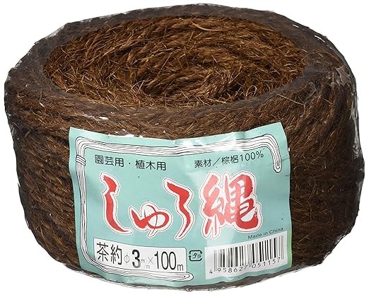 伸縮が少なく堅く良く締まるため園芸資材などの結束に便利なシュロナワです。