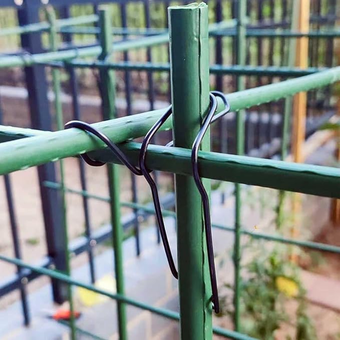 【ガーデニング支柱の固定に最適】:2本の支柱を簡単に固定し、交差部分をしっかりと安定させます。操作は非常に簡単で、追加の工具は必要ありません。支柱が固定されるため、植物をしっかりと支え、成長に合わせて安定した支えを提供します。