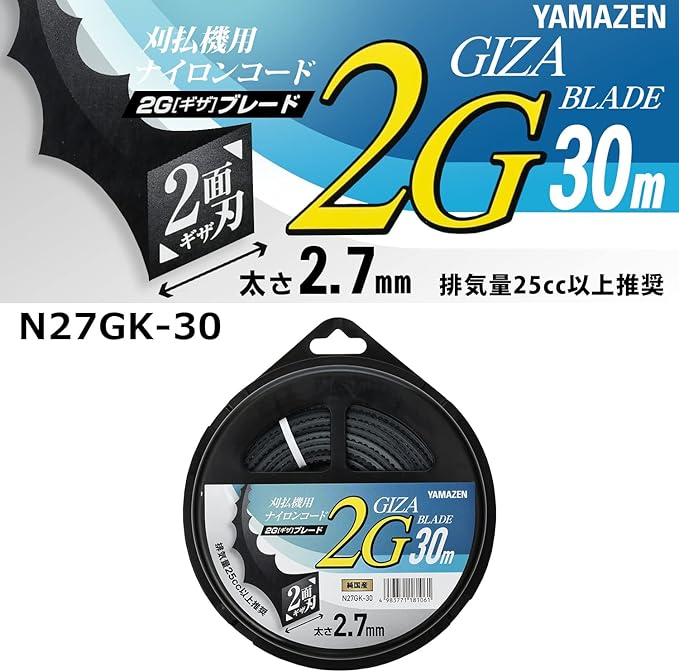 山善(YAMAZEN) 草刈用ナイロンコード 日本製 太さ2.7㎜ 長さ30ⅿ 草刈り機 ナイロンカッター 2Gギザブレード N27GK-30