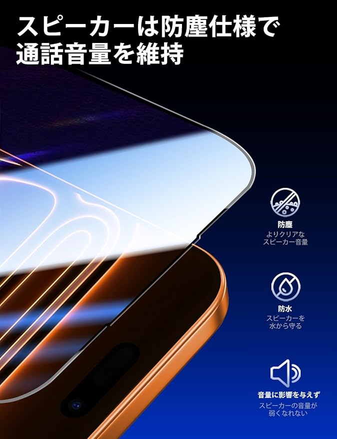 【スピーカー保護】本製品(強化ガラスフィルム)は完全にスマホ本体のスピーカーを覆うことでなく、メッシュデザインでホコリ防止、防水などが可能です。なお、スピーカーの作動にも影響なく楽に使えます。