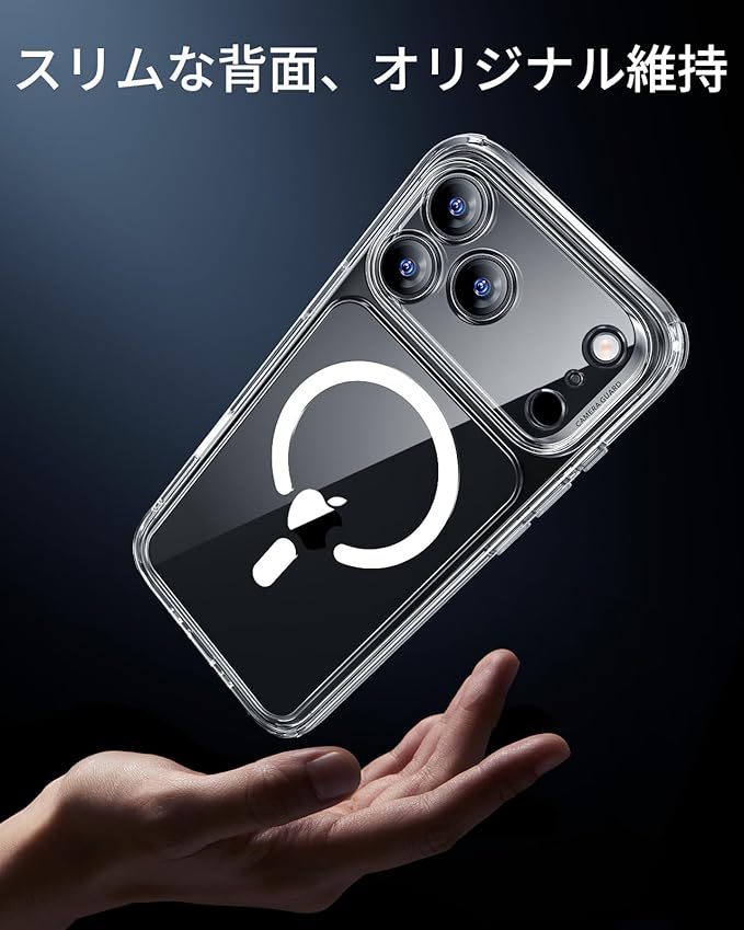 【ズレない・外れない!最強マグネット〈1,500gの保持力〉】 業界トップクラスの強力磁力(1,500gの保持力)を内蔵した いphone17promaxケースです!MagSafeワイヤレス充電器やアクセサリーが瞬時に「ピタッ」と吸着するため、満員電車や急いでいる時でも位置調整の手間が不要です。充電中のずれ落ちやアクセサリーの外れが心配ない設計で、移動中やアウトドアでの利便性が格段に向上します