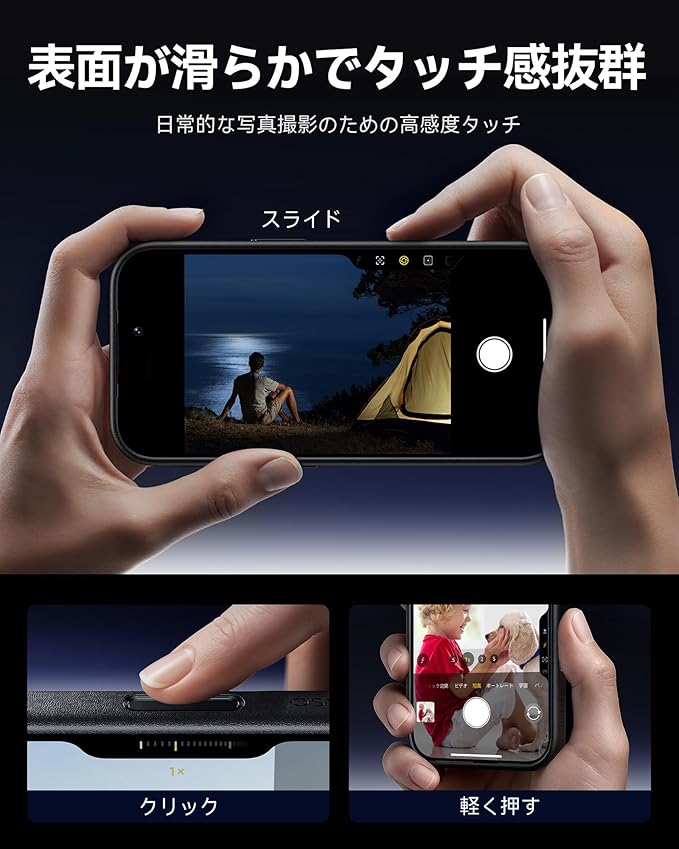 【半透明・マット仕上げ】背面は耐久性や耐摩耗性に優れたポリカーボネート使用。表面には指紋防止ナノコーティングを施しており、指紋がつく心配もありません。マットな質感でサラサラした触り心地。背面は半透明なので、リンゴマークが透けて見えるようになっています。高級感も併せ持ったケースです。また、いPhone 17 ProMaxケースはカメラコントロールカバー付き。iPhone17シリーズからのカメラコントロールボタンに対応しています。