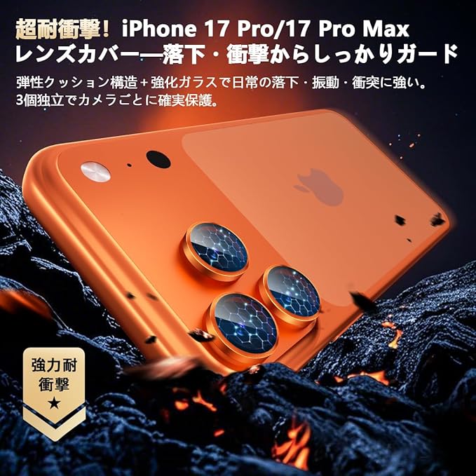 対応iPhone 17 Pro と 17 Pro Max専用 - カメラレンズ専用に精密設計された3枚セット。17 Proおよび17 Pro Maxの3つのカメラレンズにぴったりフィットし、違和感なく装着可能。