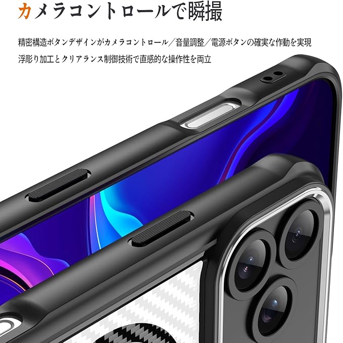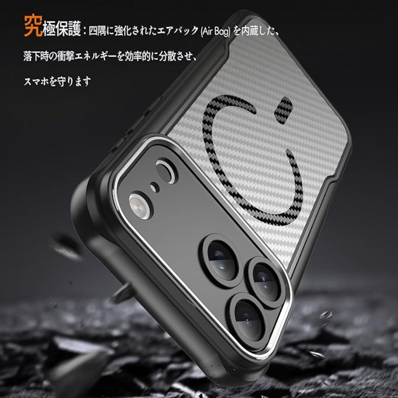 Panda Baby iPhone 17 Pro Max 用 ケース MagSafe対応 半透明 マット質感 指紋防止 耐衝撃バンパー マグネット搭載 レンズ全面保護 「おしゃれなカーボン調」 (ブラック)