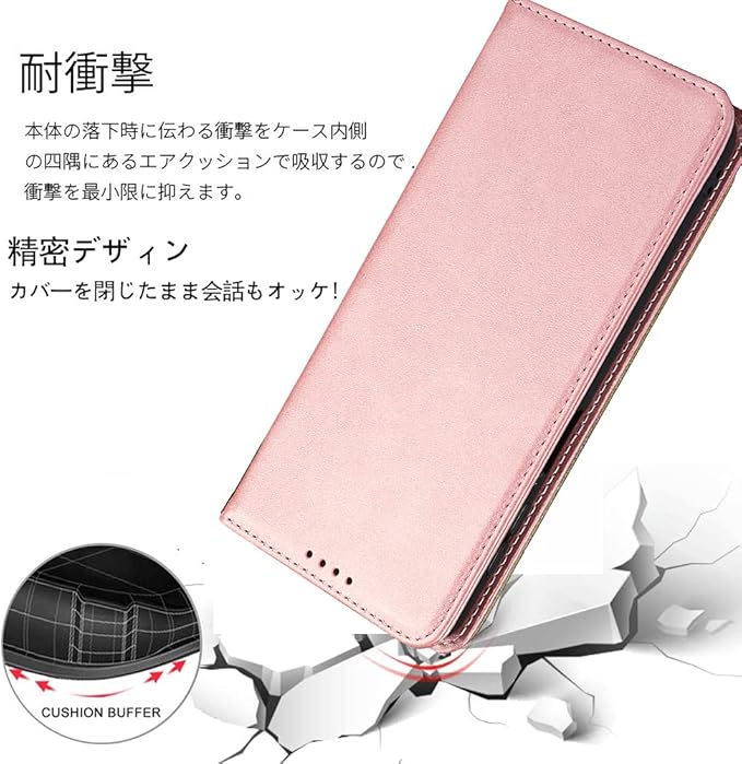【磁性機能】内蔵マグネット機能搭載の手帳型ケースなので、留め具の邪魔無し、滑り防止の素材を採用され、とてもシンプルな感じで、しかも持ち易く、使い勝手がよいのです。