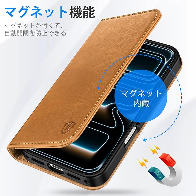 【RFIDブロッキング技術採用】本iPhone 17 Pro Maxケースのカードスロット&ポケットの裏地には、RFIDブロッキングライニングを採用しています。先進的なRFIDブロッキング技術により、信号をブロックし、ICカードの情報や個人情報などを安全に守ります。信号がブロックされるため、カードをケースに入れたまま反応しない場合は、カードを取り出してお使いください。