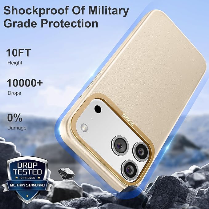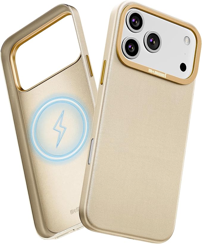 「memumi」高級レザーケースiPhone 17 Pro Max用のマグネット搭載 同色メタルカメラリング デザイン 耐衝撃カバー