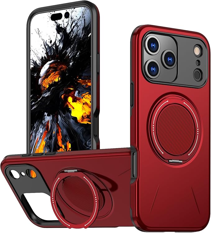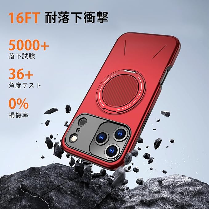 iPhone 17 Pro Max 用 ケース 360 回転スタンド リング付き カバー スタンド機能 縦横両対応 TPU+PU 保護ケース カバー背面 シェル クバー ソフト 耐衝撃性 ストラップホール付き アイフォン 17 Pro Max スマホケース