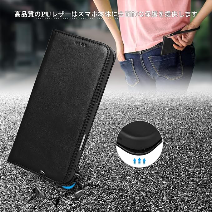 【Keallce】iPhone 17 Pro Max ケース 手帳型 スマホケース カード収納 MagSafe対応 ストラップ付き スタンド機能 マグネット付き PUレザー 耐衝撃 全面保護 いphone17Pro Max カバー 6.9インチ ブラック