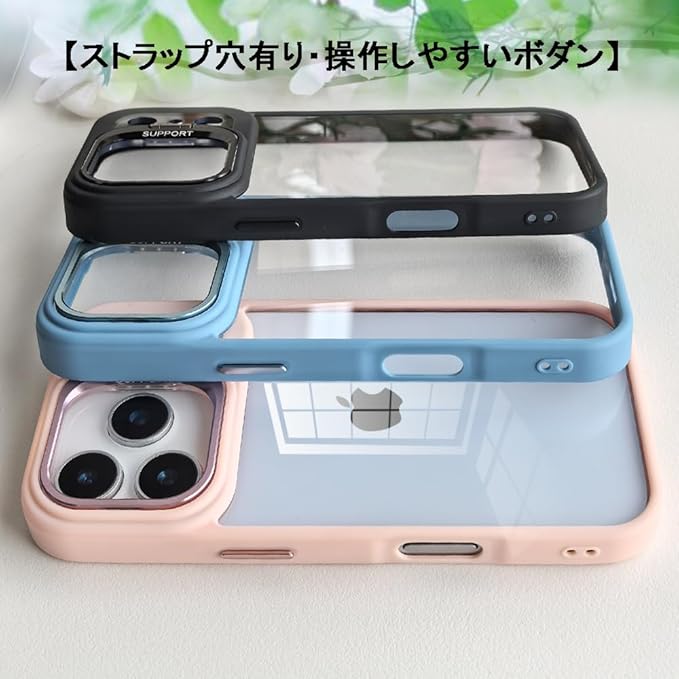 スマホケース 対応 クリア 透明 レンズスタンド付き スタンド機能 レンズカバー付き PC背面+TPUバンパー おしゃれ 耐衝撃 ストラップホール付き 携帯電話ケース