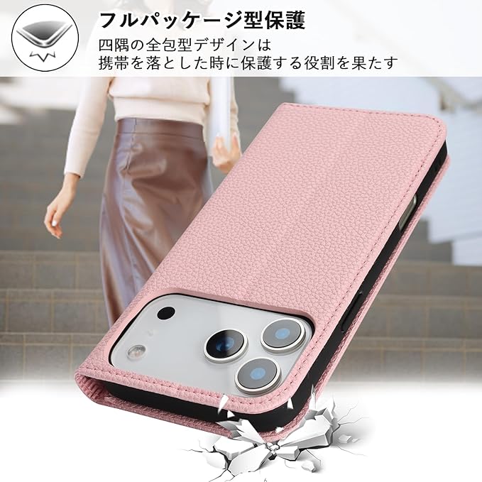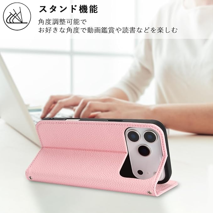 【Hamany】 対応 iphone 17 pro max ケース 手帳型 ショルダー アイホン17プロマックスケース スマホストラップ カード収納 財布型 スタンド機能 スマホケース いphone 17promax マグネット式 女性 肩がけ 首掛け 斜め掛け ショルダーバッグ 携帯カバー -ピンク