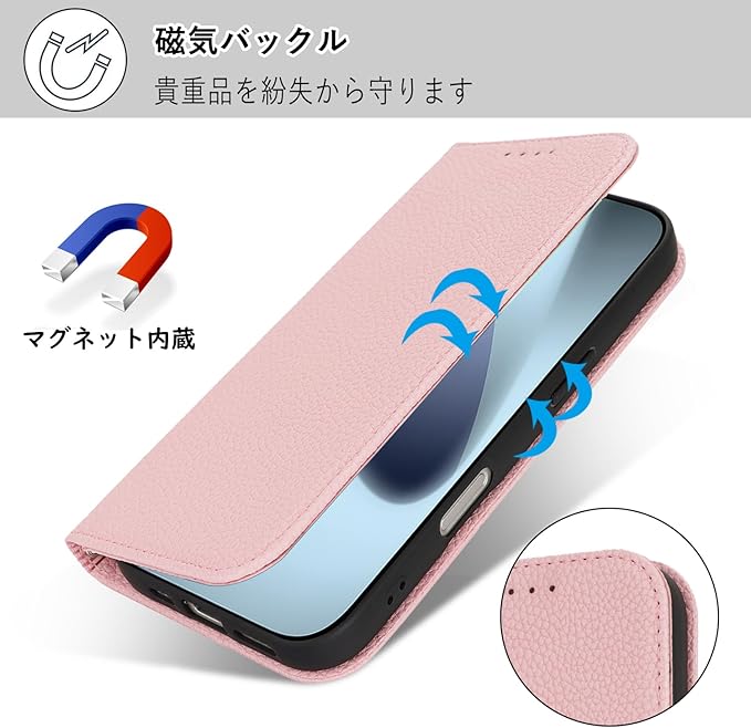 【マグネット式】内蔵マグネットの手帳型ケースです。とてもシンプルな感じで、しかも持ち易いて、使い勝手がよいのです。