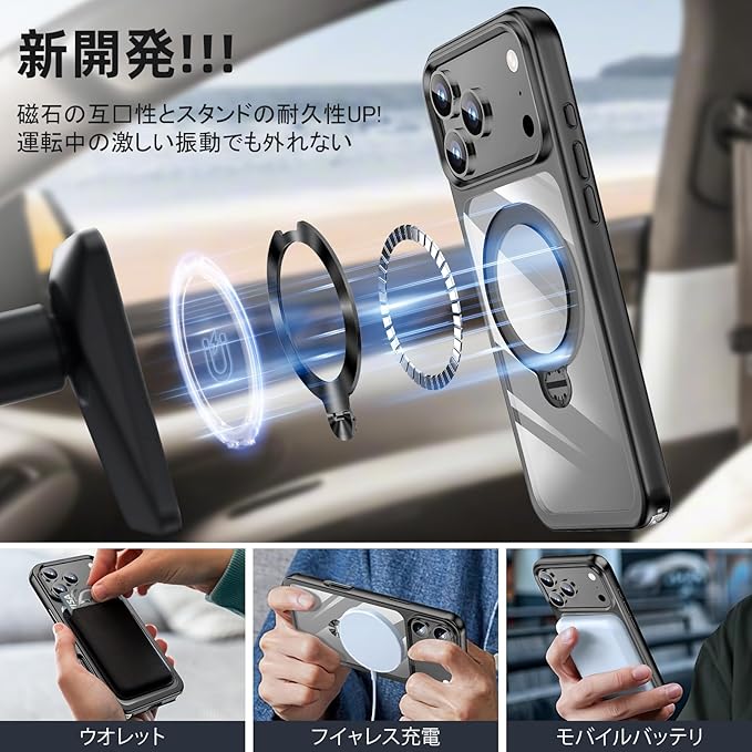 【MagSafe対応&強力磁力】 360度内蔵マグネットでMagSafeアクセサリーを強力吸着。安定した充電も可能。※Qiワイヤレス充電非対応/MagSafeウォレットの「探す」機能非対応。