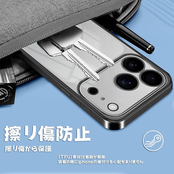 【驚きの透明感・メッキ加工】iphone 17 Pro Max 用ケースの背面は透き通った高い透明度を誇り、フレームは多層メッキ加工技術によって設計。オシャレで独特の輝きを放ち、シンプルで高級感溢れています。iPhone17 ProMax の美しさはそのままに本体を保護しているのです。そして、これはアイホン 17ProMax の指紋認証を完全にサポートします。