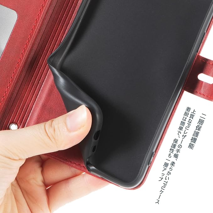 ❶【耐衝撃性】耐熱性と柔軟性を誇る上質なPUレザーで作られ、手触り良い、落下時の衝撃を効率的よく吸収できるようにケースの各コナーの裏側が設計されています。丈夫でほど良い厚みで、落としてもスマホをきちんとお守れます。