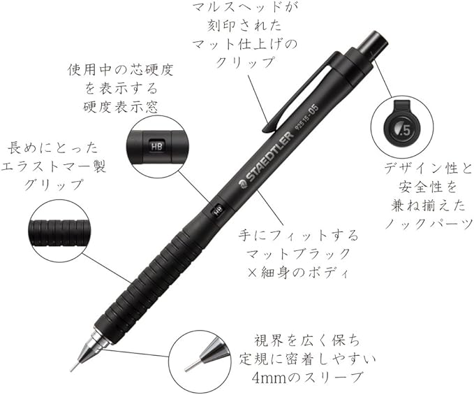 ステッドラー(STAEDTLER) シャーペン 0.5mm 製図用シャープペン オールブラック 925 35-05B