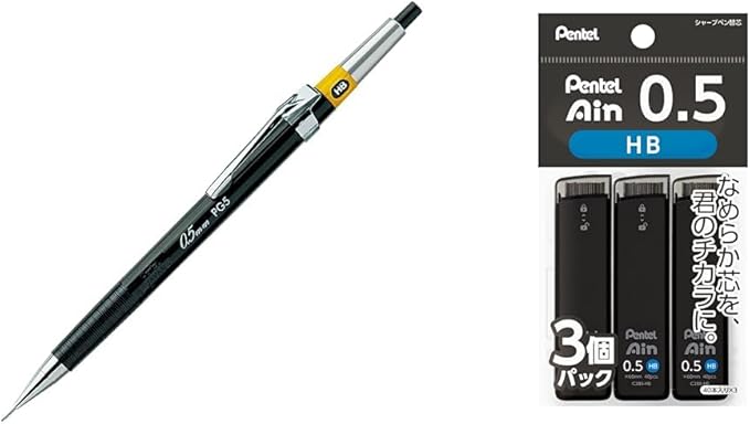 【セット買い】ぺんてる シャープペンシル グラフペンシル 0.5mm PG5-AD & ぺんてるアイン 0.5mm HB 3本セット XC285HB-3P