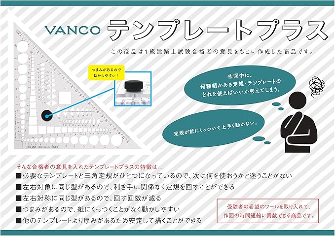 *建築士試験場で使用不可になった報告はありませんが、念の為に従来のテンプレートもご持参ください(バンコ202-80等)