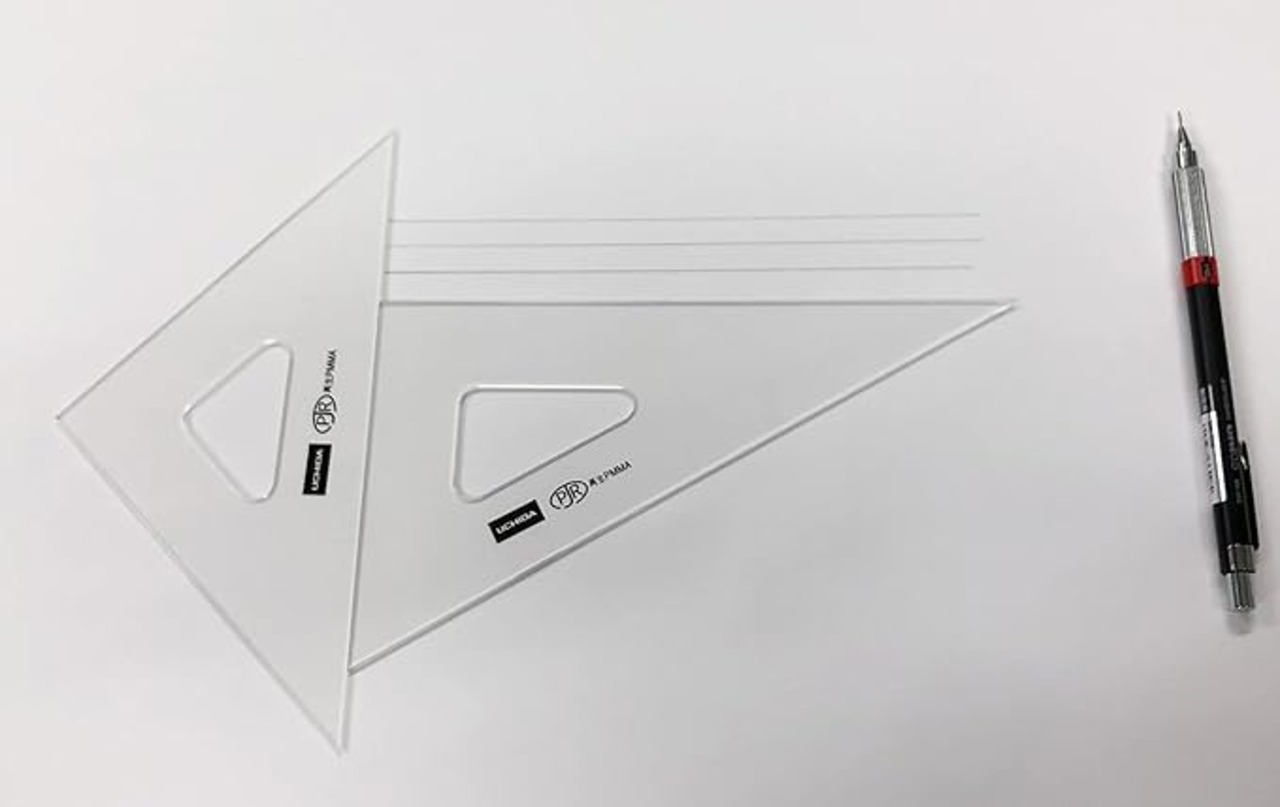 使い勝手のいい3mm厚(ドラフターや平行定規のスケールの厚みと同じ)です。